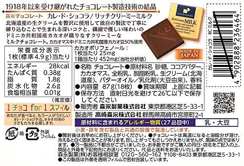 原材料:砂糖、ココアバター、カカオマス、全粉乳、脱脂粉乳、生クリーム(北海道産)、バターオイル/乳化剤(大豆由来)、香料