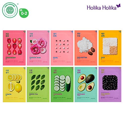 -. Feature : Green tea 1ea, Cucumber 1ea, Lemon 1ea, Damask Rose 1ea, Shea Butter 1ea, Avocado 1ea, Acai Berry 1ea, Pearl 1ea, Strawberry 1ea, Rice 1ea / Choose 10 different mask sheet with various natural ingredients depending on skin type or condition. / Nude fit sheet, called 'breathing sheet' of low irritation and high moisturizing, absorbs more essence than regular sheet. / Can use for sensitive skin and tencel is used for underware, bedding and etc with soft feeling / All ingredients of EWG green level with 100% natural scent to work on skin mildly.