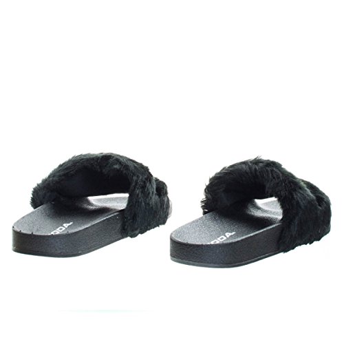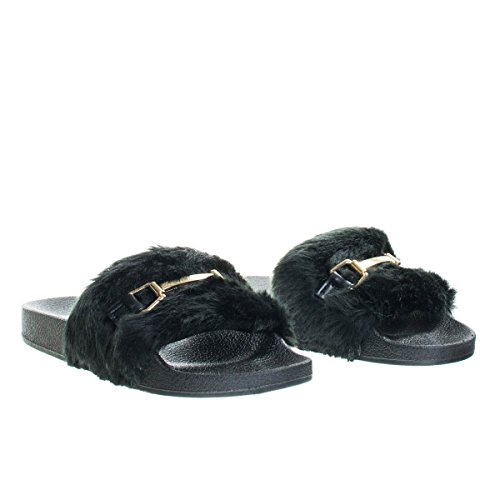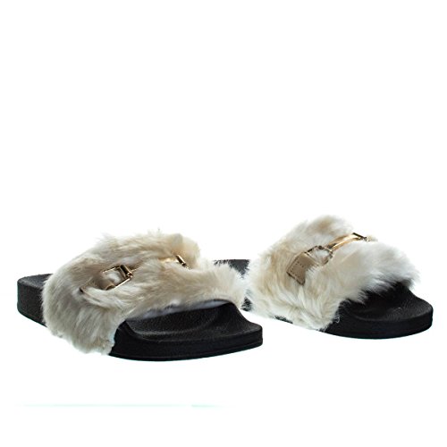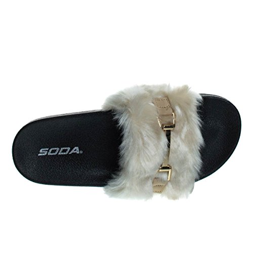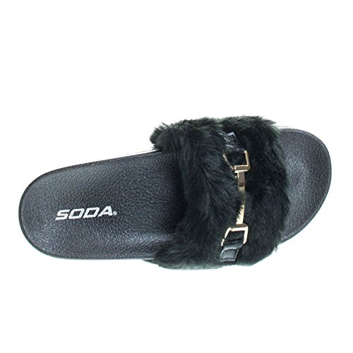 Binding : Apparel Product Description About This Shoes :Slip on these gorgeous slipper with holded footbed platform featuring a soft outsole, faux fur upper vamp with a gold metallic horsebit hardware. Brand - Soda Colors Available: Black, Beige Occasion: Casual Shoe Type: Slides Shoe Style: Slides Inner Lining: synthetic Heel Height In Inches - 1 Heel Style - 0 Toe Style - peep-toe Platform Height In Inches - 0.25 Shaft Height In Inches - n/a Circumference Opening - n/a Strap Type - strapless Sole - manmade Condition: New without box(shipped in padded envelope) All Man Made Material unless otherwise stated. Computer/Phone/Table monitors might show color differently because of its quality or calibration, we suggest you look at the photo in at least 3 monitors if you need exact color match of your shoes. 0