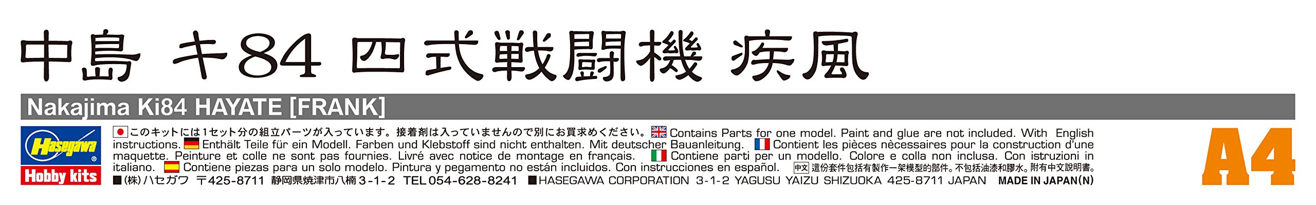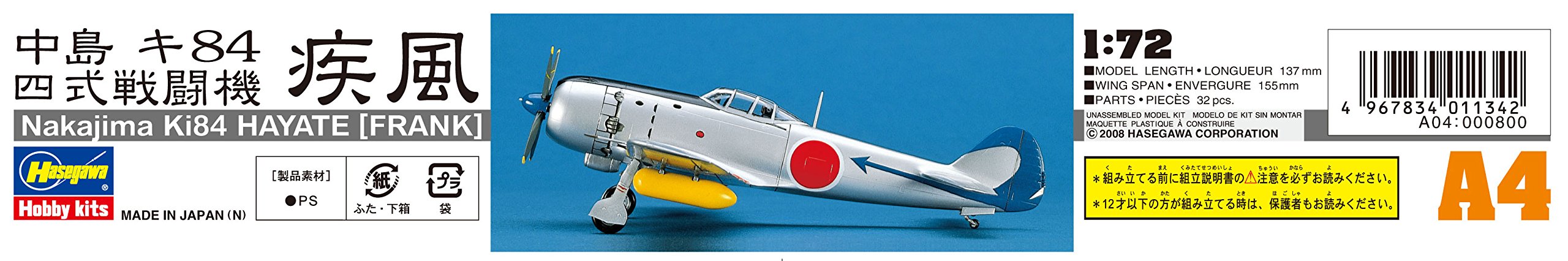 HASEGAWA 00134 1/72 Nakajima Ki84 Hayate (Frank)