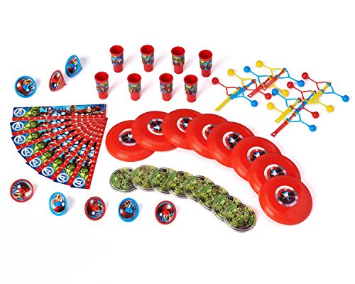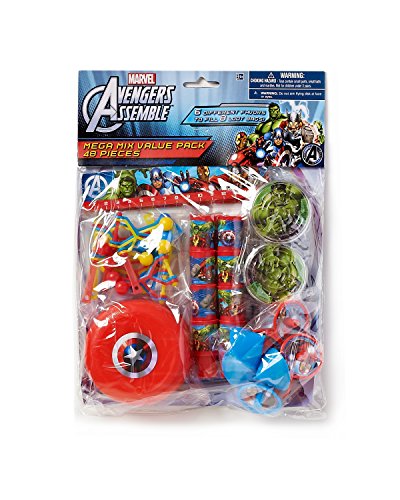 -. Feature : 48-piece mixed party favor value pack! / 6 different favors to fill 8 goodie bags / Package includes: 8 maze puzzles, 8 flying discs, 8 mini tops, 8 siren whistles, 8 mini clackers and 8 cardboard rulers / Avengers assemble! Action-packed Avengers mixed party favors feature Captain America, Thor, Iron Man and the Hulk! / Perfect American Greetings party supplies and favors for a kid's birthday party or Marvel Avengers themed party