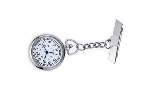 -. Title : Silver Nurse Fob Watch With 24 Hour (GMT) Scale Clip on Quartz Pocket Watch