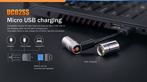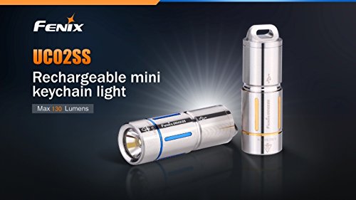 FENIX UC02 SS 130 Lumen USB Rechargeable Cree LED keychain Flashlight UC02SS (Stainless Steel/Gold Color) with, EdisonBright brand USB charging cable bundle
