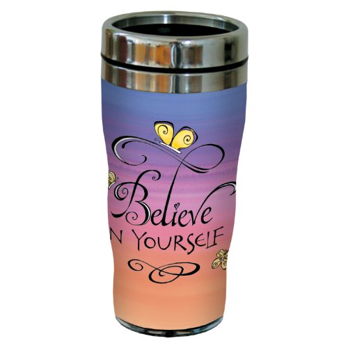 Tree-Free Greetings strives to use the most eco friendly materials and processes possible. Printed and assembled in the USA, The Tree-Free Greetings 16 Ounce Sip 'N Go Stainless Steel Lined Travel Tumbler is vibrantly printed with hard to find Lakeside Design and Zenspirations inspirational and uplifting art by Joanne Fink and is great for everyday use. It is reusable therefore eliminating any disposable paper or Styrofoam cup waste. BPA free and Proposition 65 compliant, this beautiful and durable tumbler is stainless steel lined, resists condensation and holds 16 ounces of your favorite hot or cold beverage. To preserve the quality of your tumbler, hand washing is required. The 16 Ounce Sip 'N Go Stainless Steel Lined Travel Tumbler makes the perfect gift or souvenir for everyday use. Save trees and spread joy. Buy a Tree-Free earth-friendly gift today.Feature