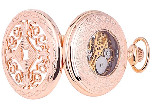 -. Title : Womens Hand Wind Rose Gold Tone Case and Roman Numberal Pocket Watch,Half Hunter