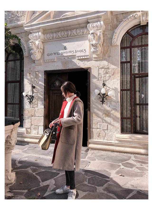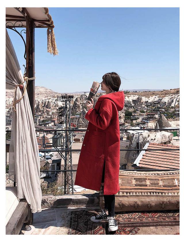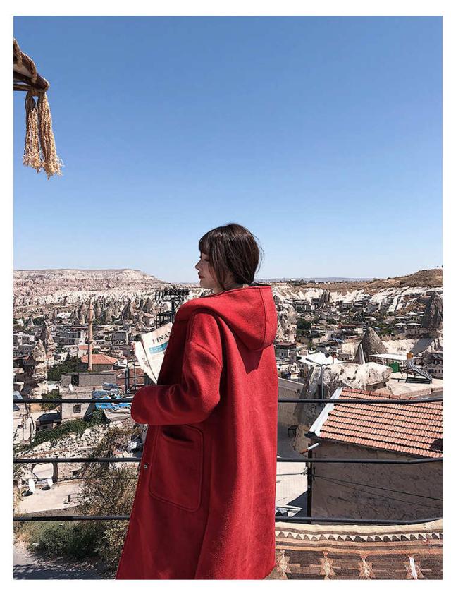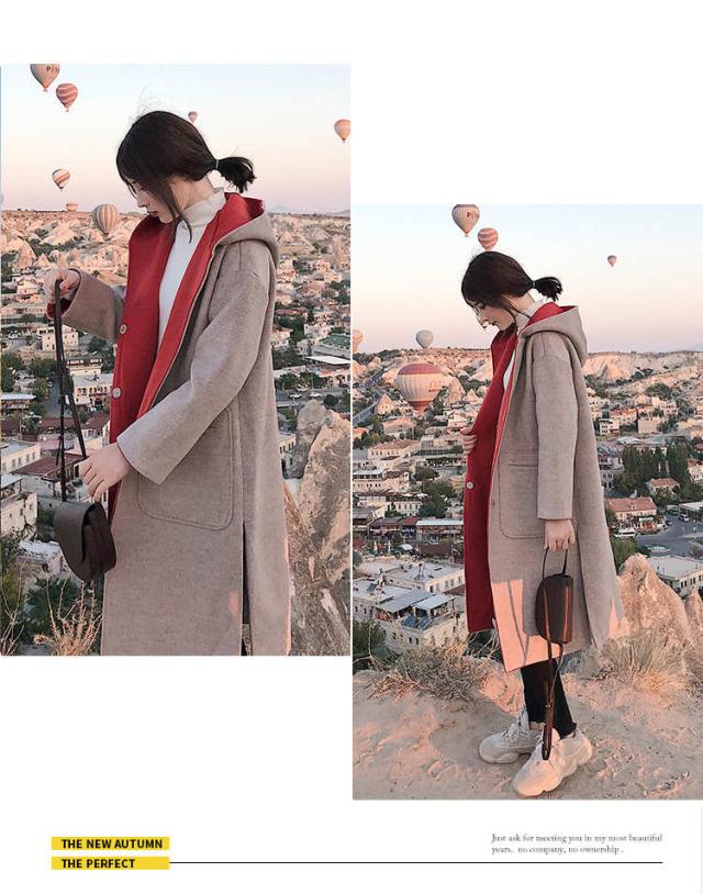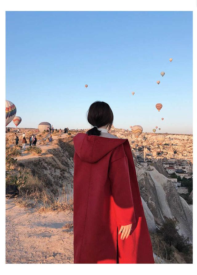 高級感あふれるロング丈のキャップ付きコート