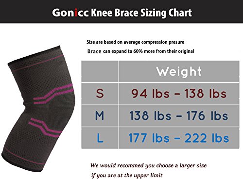 Studio : gonicc Publisher : gonicc Binding : Misc. Product Description Attention Please: We offer the lifetime warranty, if there are any quality problem, please contact us with our Customer Care E-mail service@gonicc.top, send your order number and take some photos of the product to us, we will provide a replacement to you ASAP. Check out the benefits of Gonicc Professional Knee Sleeves: - Increase Blood Circulation. - Lightweight Breathable Material (Moisture Wicking) . - Helps Recovery after exercise/post workout. - Soft Materials for Comfortable Wear. - Offers rejuvenating relief from arthritis, aches, pains. - Offers optimal muscle support between workouts and during casual everyday activities. Material: - Nylon 60%, Polyester 10%, Latex 30%. Package content: 2 x Knee Support (left,right) OUR SERVICE - 100 % Satisfaction Guaranteed. CLICK ADD TO CART AND ORDER YOURS TODAY!