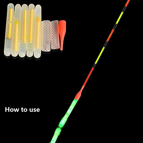 -. Feature : luminous:10~12 Hours , Visibility:15M/30M/50M/100M / Size: Diameter x Length: 3.0*25MM / 4.5*37MM / 6.0x50MM / 7.5X75MM / How to use: Crumb the pellet in the tube put it on the float pole end and the parts under the water / Note: If there is Liquid spilled from the tube and splashes on the skin, you can wash it out with clean water. Storage: Keep away from the direct sunlight with 24 months of shelf life / This Light Stick shows your rod tip and float at night. The Fishing Light Stick provides a transparent tube to join between two sticks. Easy to position the night Light Stick between fishing rod and floats at night time
