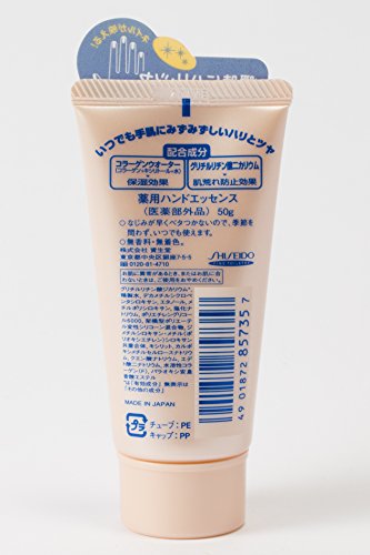 「약용 핸드 에센스」서는,베타 붙지 않고 수피부(기)를 건조부터 확실히 보호 한다,약용 핸드 크림입니다.대량의 수분 캡슐(콜라겐 워터)가 포함되고 있고, 도포 했을 때에 성분이 수피부에 재빠르게 침투해 친숙함 봅니다.화장수와 같은 사용감으로,수피부(기)는 촉촉해지는 것으로(에) 베타 붙지 않습니다.더욱 더,실리콘 오일도 배합.수피부에 얇은 베일(veil)를 구조,윤기를 지킵니다.4계절용 사용으로 옵니다.글리시리진산《니카리우무》배합.의약부외품.
