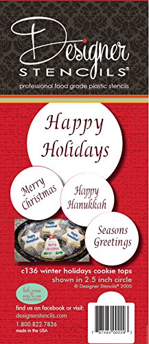 Designer Stencils C136 Winter Holidays Cupcake and Cookie Stencils (Merry Christmas, Happy Holidays, Happy Hanukkah and Seasons Greetings)