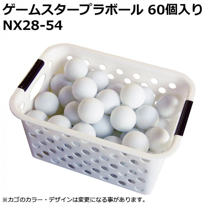 公認球に近いプラスチック素材を使用した練習球です。 製造国:中国 素材・材質:プラスチック 商品サイズ:直径40mm セット内容:カゴ、ボール×60個 ※サプライヤー直送品 ご注文後3~4営業日後の出荷となります【商品名】ゲームスタープラボール 60個入り NX28-54