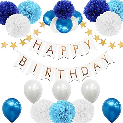 -. Title : AMTOK 誕生日 飾り付け 装飾 風船 セット バースデー ガーランド ペーパーフラワー フラッグガーランド HAPPY BIRTHDAY お祝い(両面テープ付き、合計23点セット)