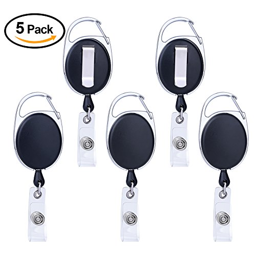 Kuuqa Retractable Badge Holder Carabiner Reel Clip Key Reel for ID Card Holders(Pack of 5)