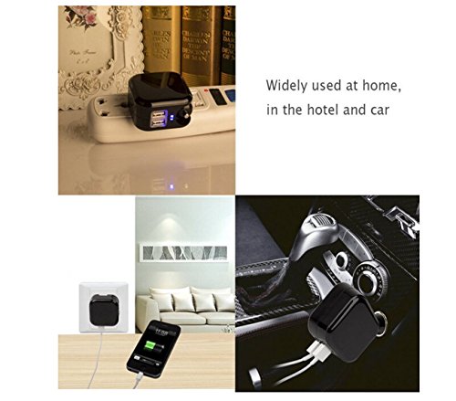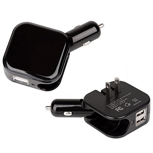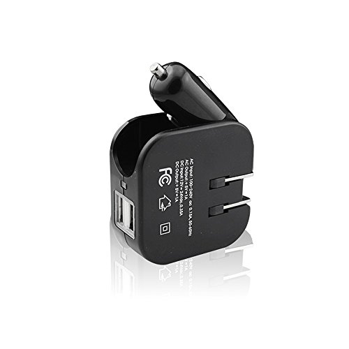 Pashion Wall Charger,Car Charger, Travel Charger, 2-in-1 Dual Port USB Portable Car Wall Charger with Foldable AC Wall / DC Car Travel Charger for iPhone 5 6 Samsung Tablet and All Phones