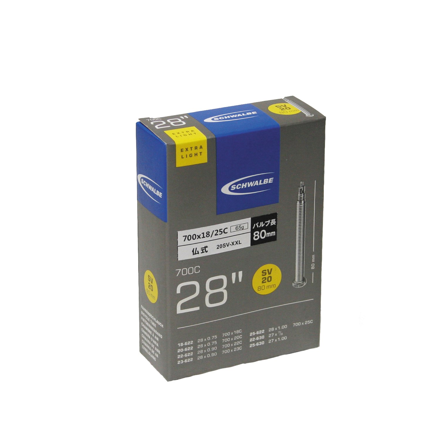 It is a Schwalbe tube of a Buddha style 80 mm valve corresponding to 700 x 18 C / 25 C.