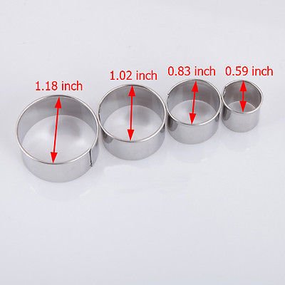 -. Brand : Cake Decorating Supplies -. Color : As picture show. -. EAN : 0798578456519 -. Feature : Brand new and high quality Material: Stainless steel Reusable, durable, non-stick. Suit for microwave, freezer, dishwasher. Ideal for making cakes, bread, biscuit, cookies, chocolate, fruit flowers and cut vegetables, etc. 3 different sizes can meet your needs of decorating cakes! STAR designed Easy to use and clean Size of Cutters:Shown as picture Color: Silver Quantity:4pcs cake cutters Package includes: Set of cake decorating tool x 1 -. Label : Cake Decorating Supplies -. Manufacturer : Cake Decorating Supplies -. ProductGroup : Kitchen -. ProductTypeName : KITCHEN -. Publisher : Cake Decorating Supplies -. Studio : Cake Decorating Supplies -. Title : 4Pcs Stainless Steel Round Circle Cookie Fondant Cake Paste Mold Cutter Tool #T -. UPC : 798578456519