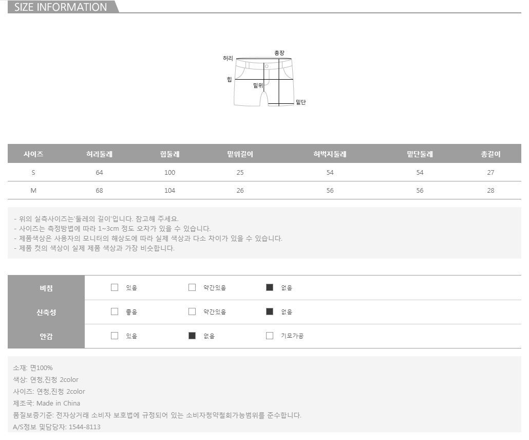 컬러는 연청진청 2color로 구성되어 있으며