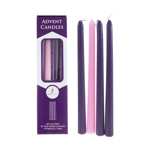 MEGA CANDLES - UNSCENTED 10" ADVENT TAPER CANDLE, SET OF 4