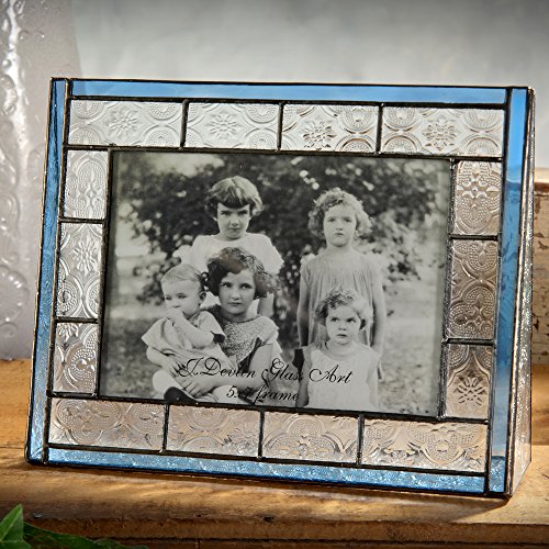 -. Binding : Kitchen -. Brand : J Devlin Glass Art -. Color : Blue, Clear -. EAN : 0875761004235 -. Feature : Tiffany Styled Art Glass in Clear Vintage Textured Glass with Pale Blue Accents / Picture Frame Holds a 5x7 Horizontal Photo / Triangular glass sides and base support the frame adding stability and style unique to J Devlin / Handcrafted stained glass made with lead free solder to protect you and the environment / Designed and Manufactured by J Devlin Glass Art 9 3/4" x 2 3/8" x 7 1/2" -. IsAutographed : 0 -. Label : J Devlin Art Glass -. Manufacturer : J Devlin Art Glass -. Model : Pic 159-57H -. MPN : Pic 159-57H -. PartNumber : Pic 159-57H -. ProductGroup : Home -. ProductTypeName : HOME -. Publisher : J Devlin Art Glass -. Size : 5x7 -. Studio : J Devlin Art Glass -. Title : J Devlin Pic 159-57h Vintage & Pale Blue Stained Glass Picture Frame -. UPC : 875761004235