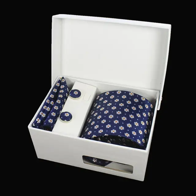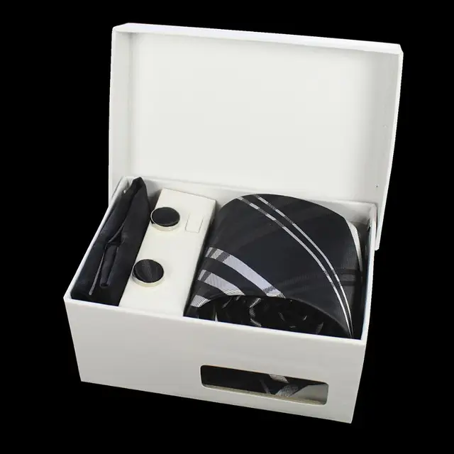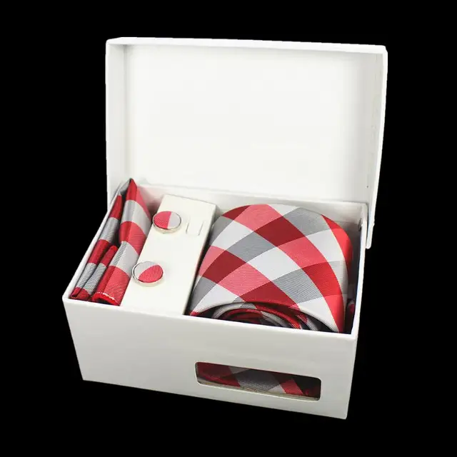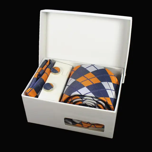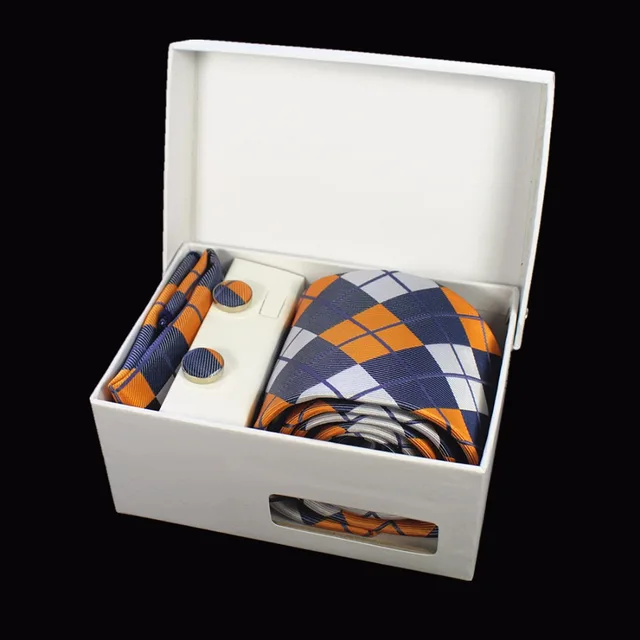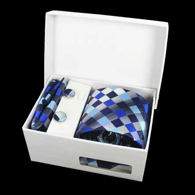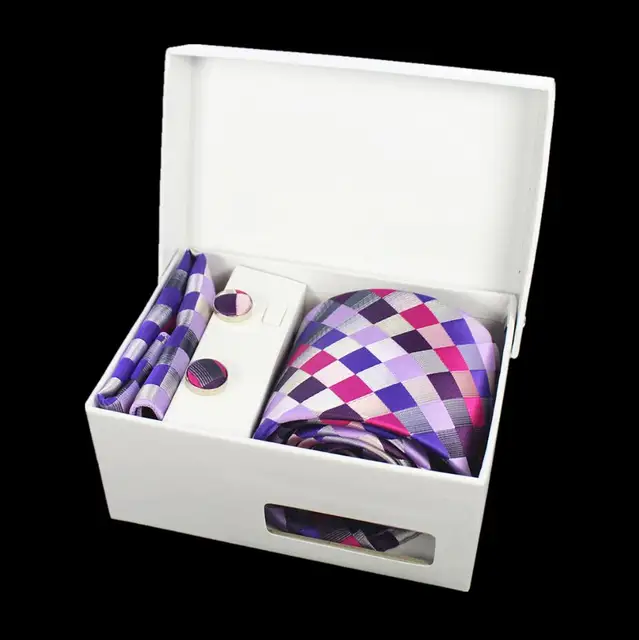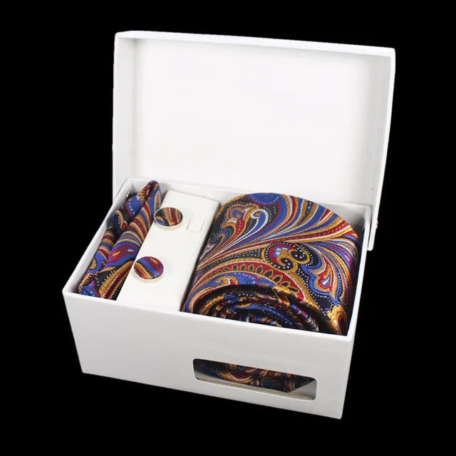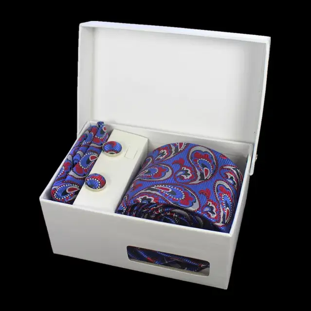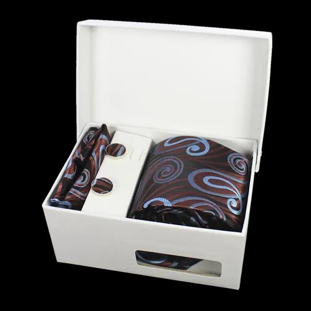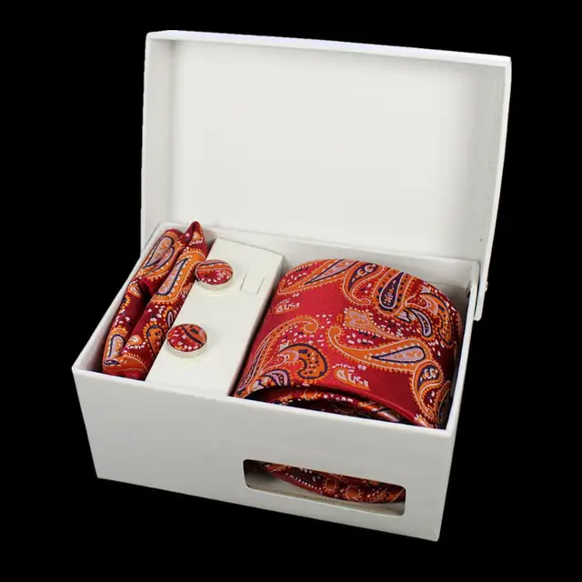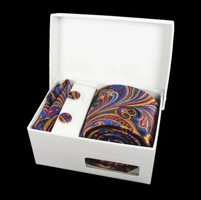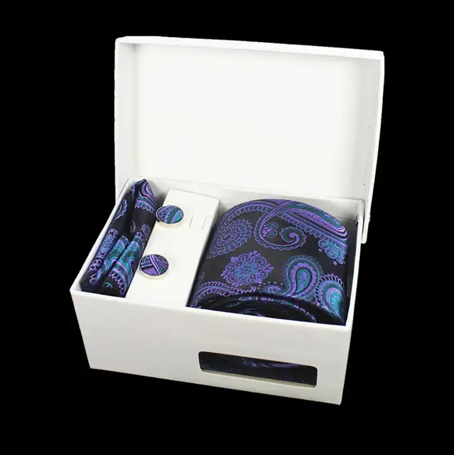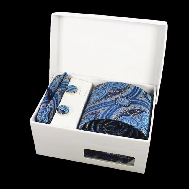 상품 내용 JEMYGINS 품질 남성 넥타이 세트 손수건 커프스 선물 상자 자카드 짠 실크 격자 무늬 페이즐리 넥타이 남성 웨딩 파티