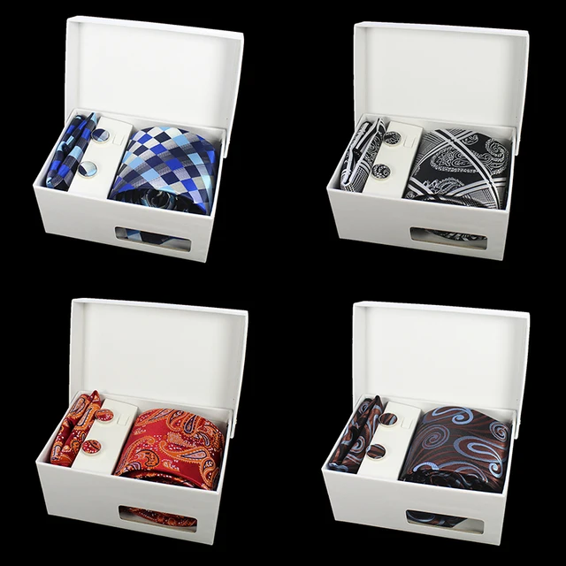 | [해외]Jemygins 품질 남성 넥타이 세트 손수건 커프스 선물 상자 자카드 짠 실크 격자 무늬 페이즐리 넥타이 남성 웨딩 파티 |