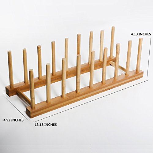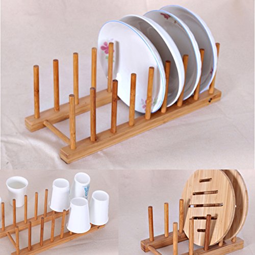 Item Features: · Go Natural: sustainable environmental friendly, natural color. · Sturdy Frame: two tiers, no crack, no deformation. · Quick Easy Dry: no water spots, no smudges on dishes, pots or silverware. · Easy to Clean: no sharp corner, featured with sleek surface and light weight. · Compact Design: can be placed anywhere in the kitchen. · Hold securely: hard and sturdy enough to hold stoneware plates securely. · Holds up to 8 plates or other utensils. · Multi-use: can be used as a dish rack for storage of Plate / Pan / Bowl / Cup / Book / Pot Lid / CD, etc. Package Include: 2* long racks 20* sticks