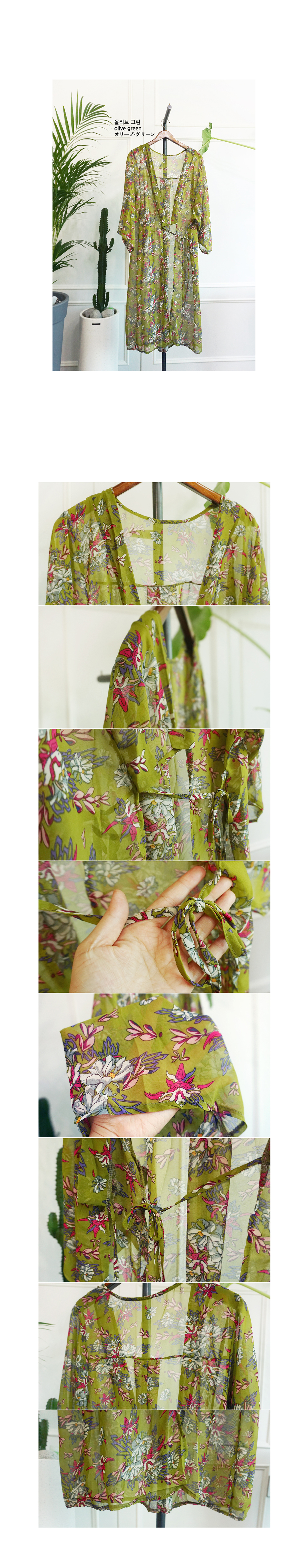 하늘 하늘 가벼운 쉬폰소재의 플라워 패턴 로브 가디건.