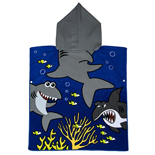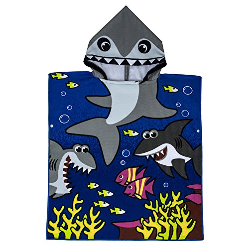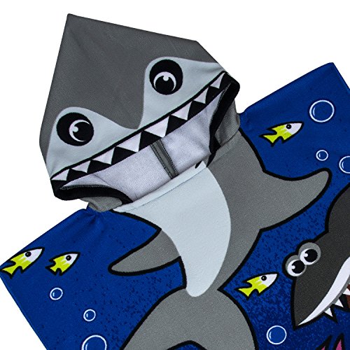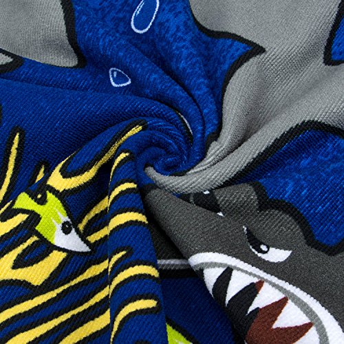 CUBEA Microfiber Kids Hooded Bath Beach Pool Poncho Towel 24×24Inch (Tiger Shark)