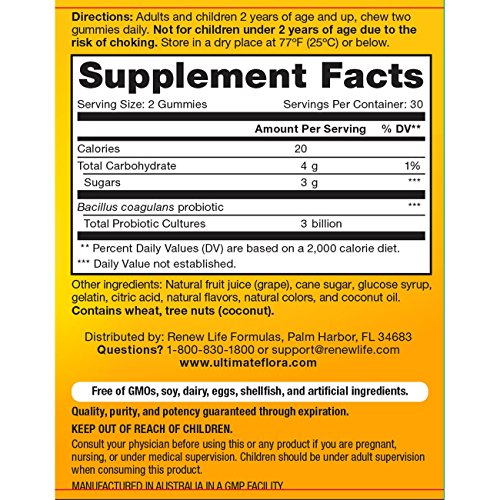 Renew Life - Ultimate Flora Probiotic Gummies - probiotics for kids and adults - 60 chewable gummies