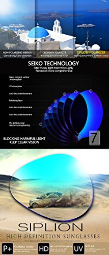 POLARIZED LENS - 100% UV400 protection coating, blocks 100% harmful UVA & UVB Rays. Polarized sunglasses reduce glare reflected off of roads, bodies of water, snow, and other horizontal surfaces. Restore true color, eliminate reflected light and scatteredht and protect eyes perfectly. Polarized Sunglasses cut glare and haze so your eyes are more comfortable and you can see better..