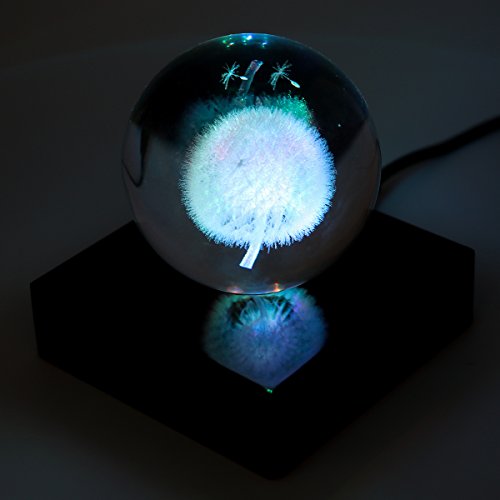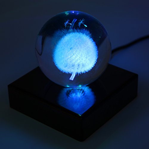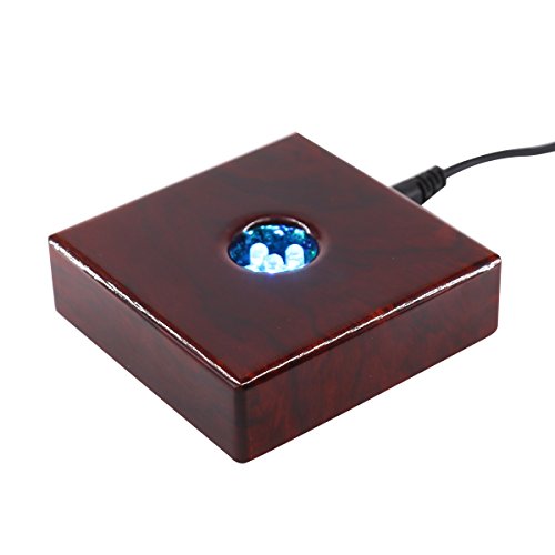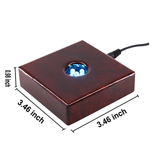 Wood Crystal Display Stand 3inch Base with 5 LED Lighted (Red)