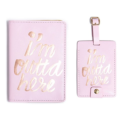 -. Brand : Bando -. Color : Light Pink, Gold, Hot Pink -. Department : womens -. EAN : 0768352418248 -. Feature : Set includes one Ban.do Lage tag and one Ban.do passport holder / Both made of a leatherette with Neon Pink interior / Both have rose gold wording reading "I'm outta here" / Metallic gold hardware on lage tag. Measures 3" x 4.5" / Passport holder has 3 card slots. Measures 4" x 5.75" -. PackageQuantity : 2 -. ProductGroup : Apparel -. ProductTypeName : LAGE -. Title : Ban.do Passport Holder & Lage Tag "I'm Outta Here" -. UPC : 768352418248