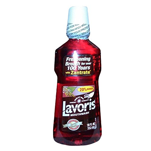 -. Feature : Lavoris Mouthwash in the Original Cinnamon Flavor / Low alcohol formulation-4% as compared to 12% to 25% for other branded products / Fights bad breath with trademarked ingredient Zantrate / Lavoris uses natural Clove and Cinnamon / Four 18 fl oz (532 ml) plastic bottles