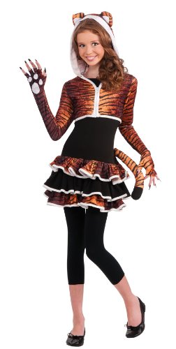 -. Binding : Toy -. Brand : Rubie's -. Color : Black -. Department : girls -. Feature : Drama Queen's Tigress Costume features a black and tiger stripe dress with layered skirt an attached tail / Also includes hoodie with tiger paws and ears as well as tiger leg warmers / Rubie's Drama Queen collection - because it's all about the fashionista, Tween small fits size 0-2, medium fits 2-4 / Black tights not included / Rubie's brings fun to dress-up with costumes and accessories kids play with all year long -. Label : Rubies - Domestic -. Manufacturer : Rubies - Domestic -. MPN : 886299 -. PackageQuantity : 1 -. PartNumber : 886299 -. ProductGroup : Toy -. ProductTypeName : TOYS_AND_GAMES -. Publisher : Rubies - Domestic -. SKU : WC23042 -. Studio : Rubies - Domestic -. Title : Rubie's Drama Queens, Tween Tigress Costume -. Warranty : Guaranteed against manufacturer defects