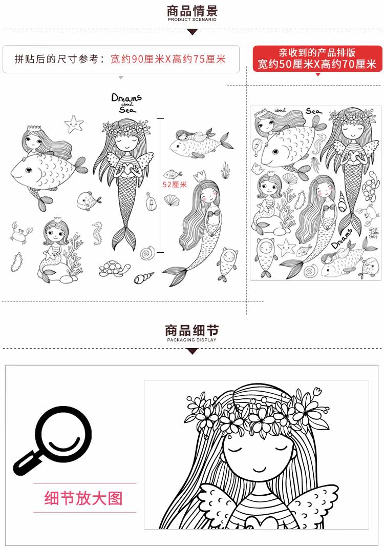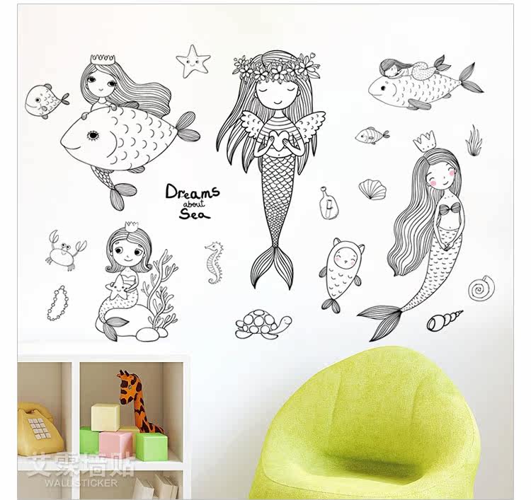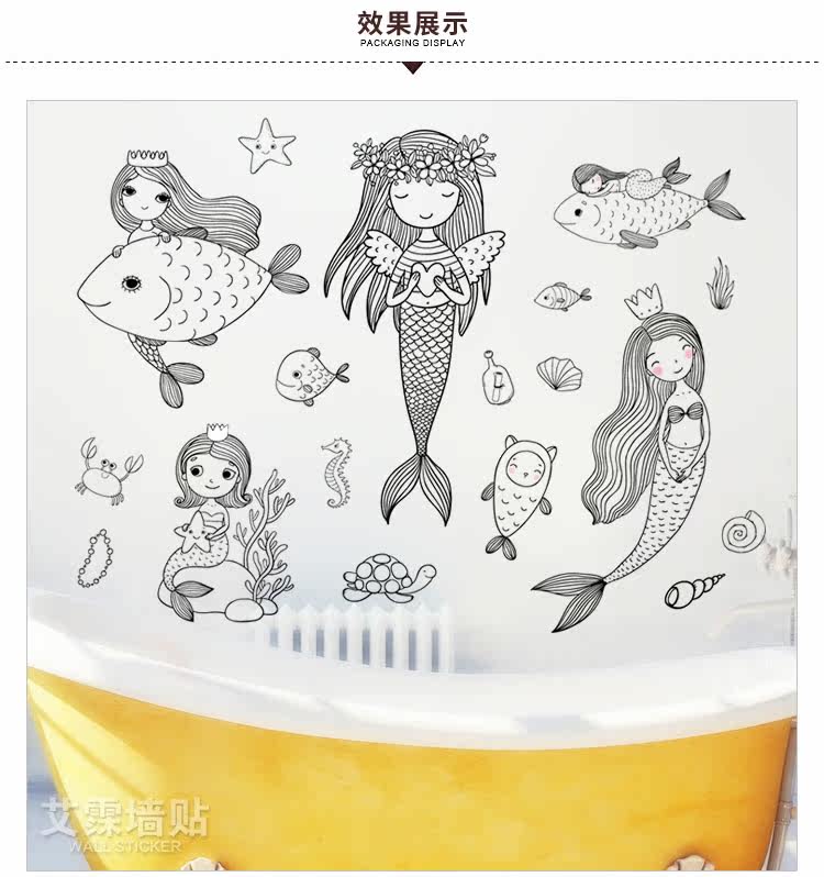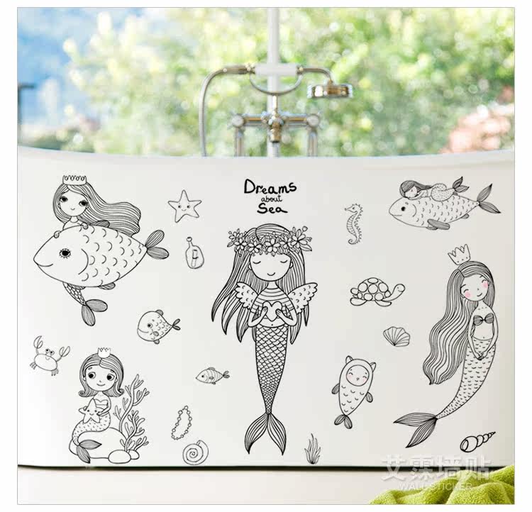 墙贴海洋美人鱼客厅卧室浴室温馨背景墙壁贴纸自粘北欧寝室装饰