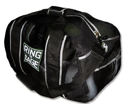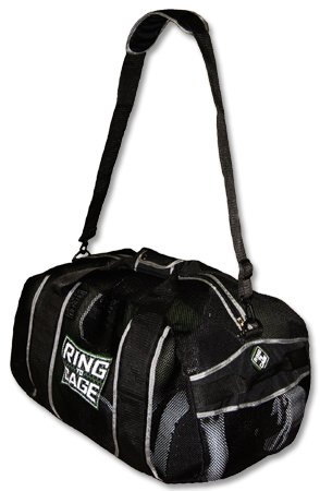 -. Binding : Misc. -. Brand : Ring to Cage -. Color : Black -. Department : mens -. Feature : High Quality super tough bold black nylon mesh allows equipment to breathe and dry out between uses. / Coated nylon bottom. / Helps eliminate odors and aids in the life of leather gear and apparel. / Full length zipper tops. Complete with adjustable detachable padded shoulder strap and padded carry handles room for all of your equipment. / Measures: 26x14x14 -. IsAutographed : 0 -. IsMemorabilia : 0 -. Label : Ring to Cage -. Manufacturer : Ring to Cage -. ProductGroup : Sports -. ProductTypeName : SPORTING_GOODS -. Publisher : Ring to Cage -. Size : One Size -. Studio : Ring to Cage -. Title : R2C Mesh Gear Bag for Muay Thai, MMA, Kickboxing, Boxing, Martial Arts