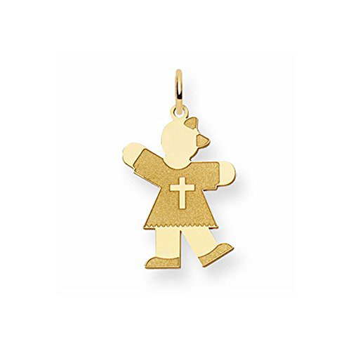 -. Title : 14K Yellow Gold Laser Cut Kid Girl in Cross Dress Charm Pendant