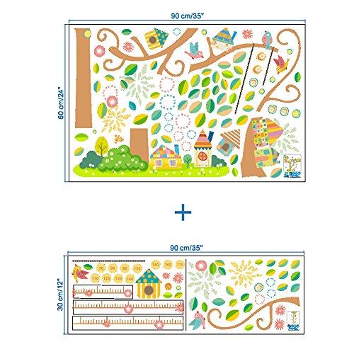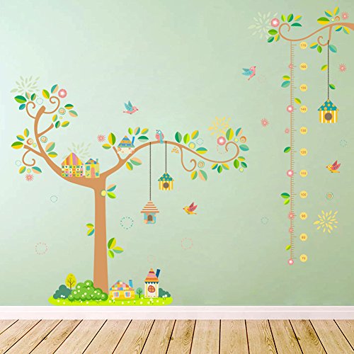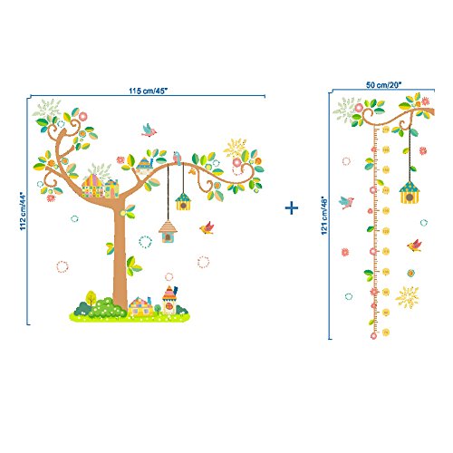 Amaonm Hot Fashion Birds Home Nest Cartoon tree Branches & Kids Growth Height Measurement Chart Wall Decals Stickers Wallpaper Removable DIY home Decorations art Decor for Bedroom Nursery School