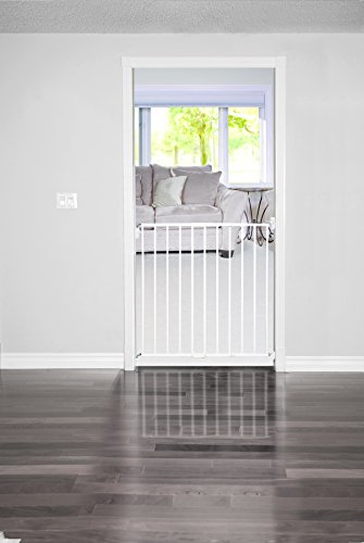 - Feature : Wall mount metal extending gate 24.5" x 40" wide and 24" tall / Quick wall release system, detachable gate removes easily / 1-way opening for stairs, 2-way for doorways / Includes all hardware for mounting as a swing gate / Use only when locking mechanism is securely engaged