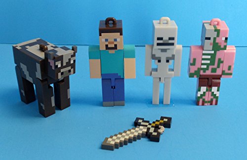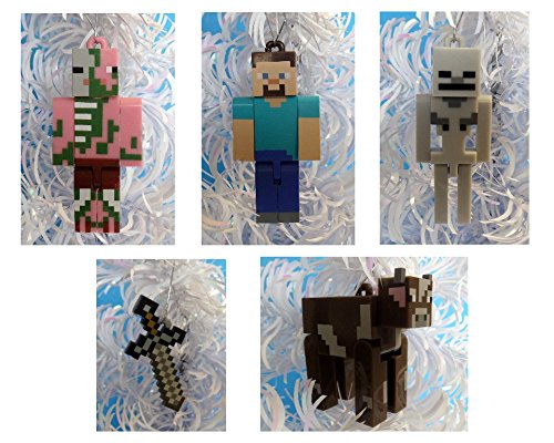 Minecraft Christmas Ornaments Featuring 5 Minecraft Ornaments with Steve, Cow, Skeleton, Pigman and Sword, Ornaments Average 2 1/4 to 2 3/4 Inches Tall, Great for a Mini Christmas Tree