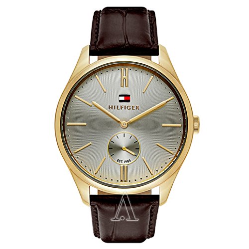 Tommy Hilfiger, Curtis, Men's Watch, Stainless Steel Yellow Gold Ion Plated Case, Leather Strap, Japanese Quartz (Battery-Powered), 1791170