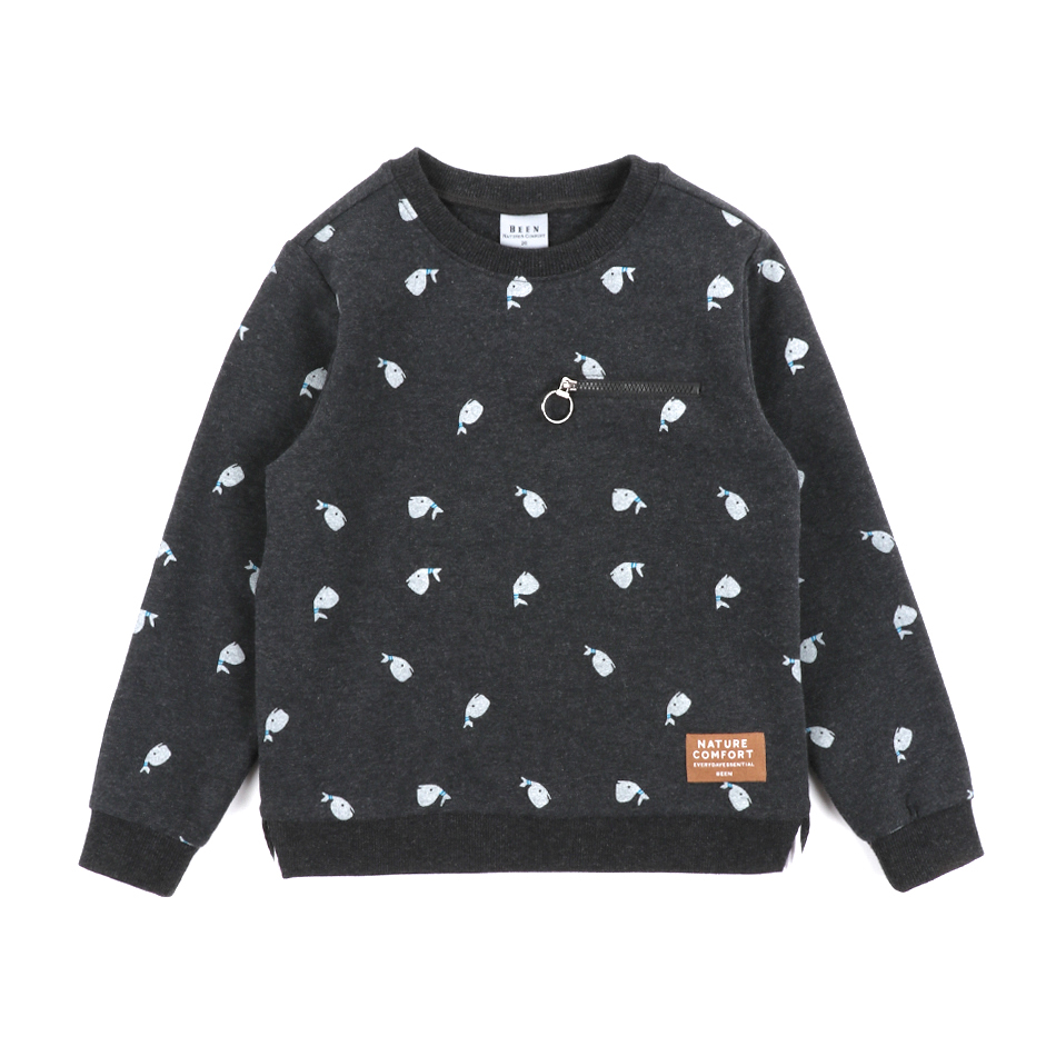 트렌디 컬러의 고래 나염으로 멋스럽고 화이트 티셔츠를 레이어드한 느낌으로 디자인하여 트렌디함을 제안합니다. BR61TS05GY와 같은 그레이 다이마루 팬츠와 세트 코디를 제안합니다. | ||||||||