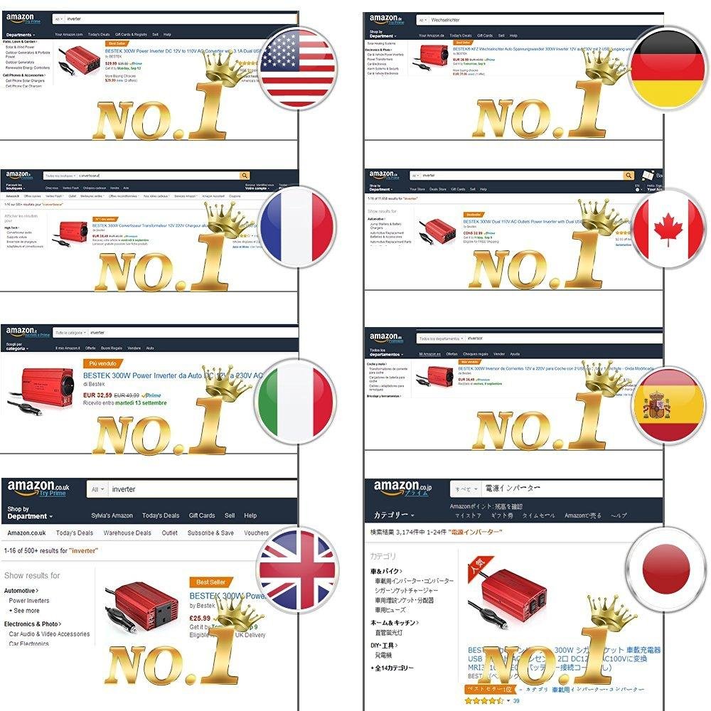 Convert BESTEK car inverter 300W cigar socket car charger USB 2 port AC outlet 2 mouth DC12V to AC100V MRI3010BU