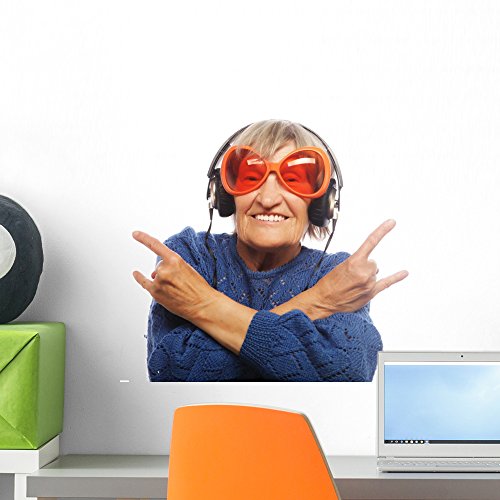 -. Title : Funny Old Lady Listening Wall Decal by Wallmonkeys Peel and Stick Graphic WM324392