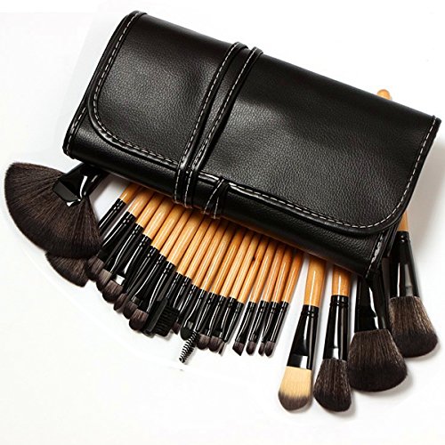 24pcs High Quality Makeup Brushes Set with a Black Holder Leather Bag