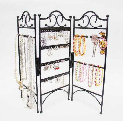 MANGO STEAM 3-PANEL ORGANIZER FOR HANGING EARRINGS, BRACELETS, & NECKLACES, BLACK