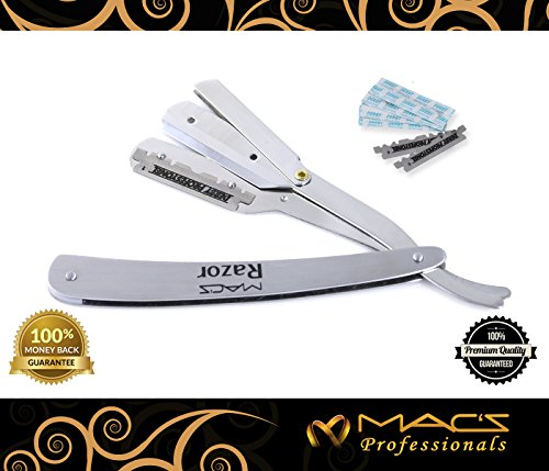 MACS PROFESSIONAL Barber Straight Edge Razor - Made Of Stainless Steel With - Easy Blades Replacement Mechanism - Close Shaving Men's Manual Shaver - Perfect for Barbershops - Macs-043B