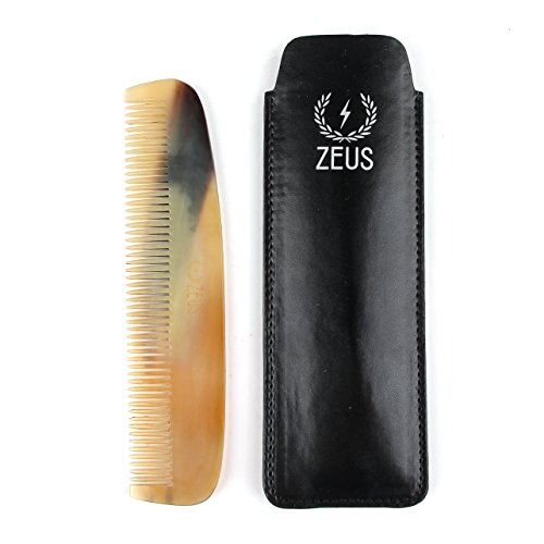 ZEUS Natural Horn Wide Tooth Beard Comb In Leather Sheath