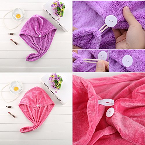 Studio : Qidoou Publisher : Qidoou Binding : Misc. Product Description Does your hair still dry with the blower? Also destroy hair organization? Catching a cold due to her wet hair? The high temperature blower your hair with smooth hair is dried, withered, yellow and forked. Qidoou top quality Microfiber Hair Towels are ideal for everyday use at home or while traveling. This Microfiber Hair Towel is made of super soft microfiber fabric. Its high water absorbency can dry your wet hair effectively and in a more natural way. Your new luxury turban will magically suck up the water from your wet hair to give you faster drying, no matter what length or type of hair you have. You'll have extra time to do your make up, have a coffee, or relax in a warm sudsy bath. A button is designed for easily and conveniently fixing the cap on your head. This microfiber hair towel is both fashionable and practical for your household and bathroom. The cute packing bag can be used to organize toothbrush, comb, towel and cellphone when traveling. Specification: Color: Peachblow, Purple Material: Coral Fleece (Microfiber) Measure: 9.8" x 25.6" Applicable People: Women / Men / Teen Weight: 4.2 OZ Machine Washable: Yes Secure Button: Yes Washing Tip: NO softener, bleaching or dry cleaning Packing List: 1 x Peachblow Microfiber Hair Towel 1 x Purple Microfiber Hair Towel How to use? 1. Bend to make your hair hang down, put hair towel on your head (the end with button); 2. Wrap your hair with the hanging part of the towel; 3. Pull up the secure loop across your head and fix it under the secure button. 0