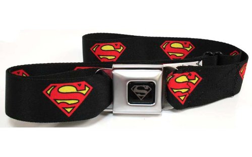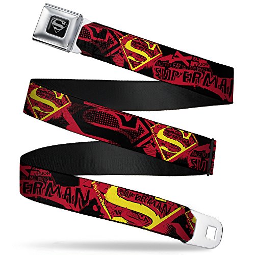 | (Buckle Down)/Accessories/Belts Buckles/DIRECT FROM USA/Superman Shield Splatter Black/white Seatbelt Belt |